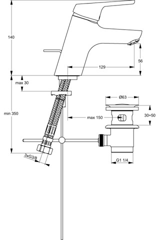 Ideal Standard CeraSprint Einhand Waschtischmischer 1/2“ für offene Heißwasserbereiter