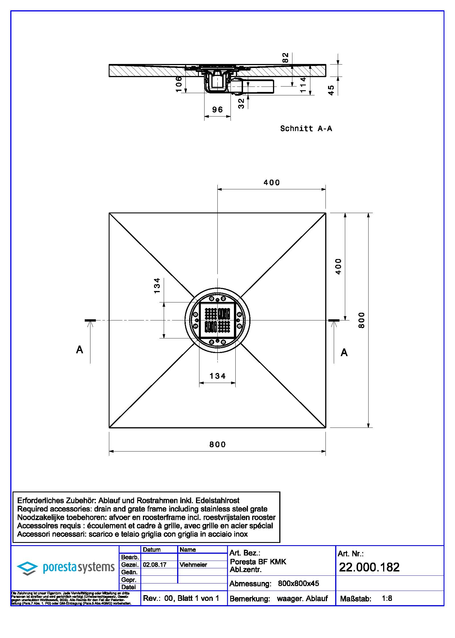 mit integriertem, einseitigen Gefälle von 1,5%, passend für